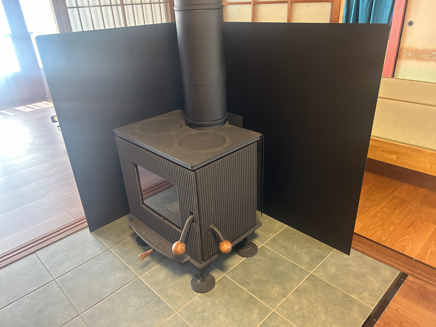 薪ストーブを入れたリビングルーム全体はこんな感じ。