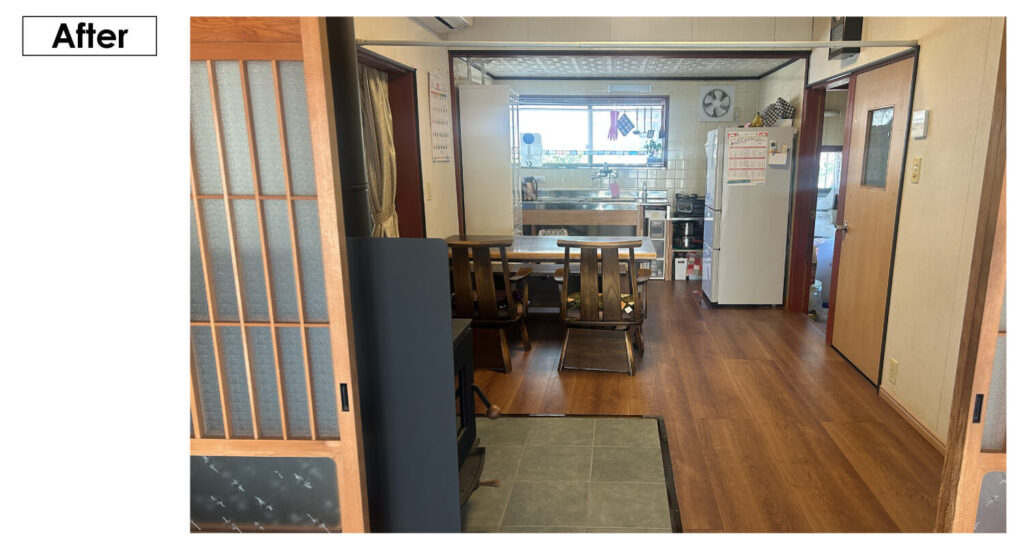 リフォームは、リビングルームの床をすべてめくって、畳敷きの和室だった部屋をフローリングの洋室にしました。キッチンは、元々あったものをうまく利用して、少しだけ直しました。DIY教室の時に指導してもらった工務店さんからアドバイスしていただいたのも、とても助かっています。薪ストーブを入れたのも大満足です。自分たちの思うような形にだいぶなってきましたが、これからやりたいのは、クロスの貼り替えとドアなどのサッシ類のリフォームです。少しずつでいいので、家族と楽しみながら取り組みたいと思っています。